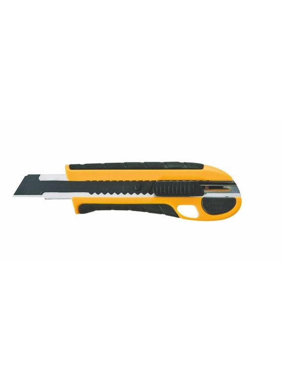 Rubberized, non-slip grip cutter with automated locking slider. Supplied with 0.6mm thcik Power Black Blades. 2 spare blades stored in the handle.