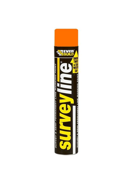 A spray applied marking paint for contractors/surveyors spot marking. Colour coded for electric, gas, water and cable company use. Semi permanent formula lasts at least 3 months after application. Survey Line is available in seven different colours: White (General Marker), Red (Electricity), Yellow (General Marker, Gas), Blue (Water), Orange (General Market), Green (Cable Work) and Black (Covering Old Lines).