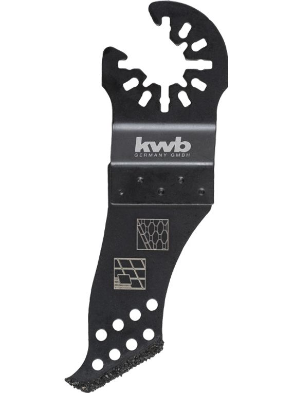 With patented plane holes for higher and faster performance and patented quick-action chuck. Mills joints of tiles with a cutting-width of 2.2 mm up to a cutting width of 52 mm. Ideal for working up into the corners. Plunging into the material and working on even surface, e.g. ideal for straight milling or cleaning of joints, removal of damaged joints for tiles or exchange of a damaged tile. Milling of grooves into sand-limestone or gas concrete for cable ducts or pipes for concealed wiring.