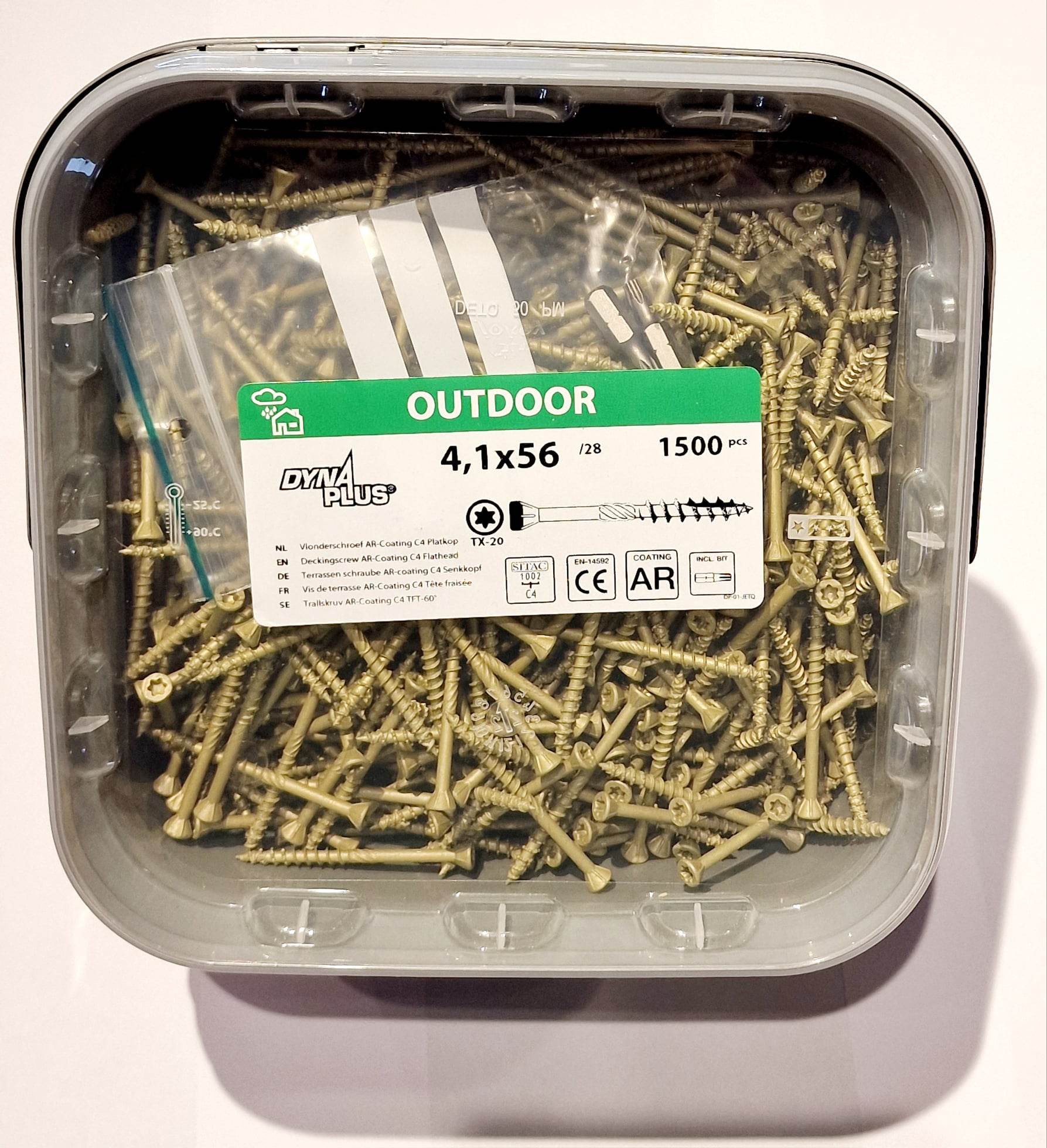 Pallaskrúfa í fötu með 1500 stk. Stærð: 4,1x56mm. Í ryðvarnarflokki C4.