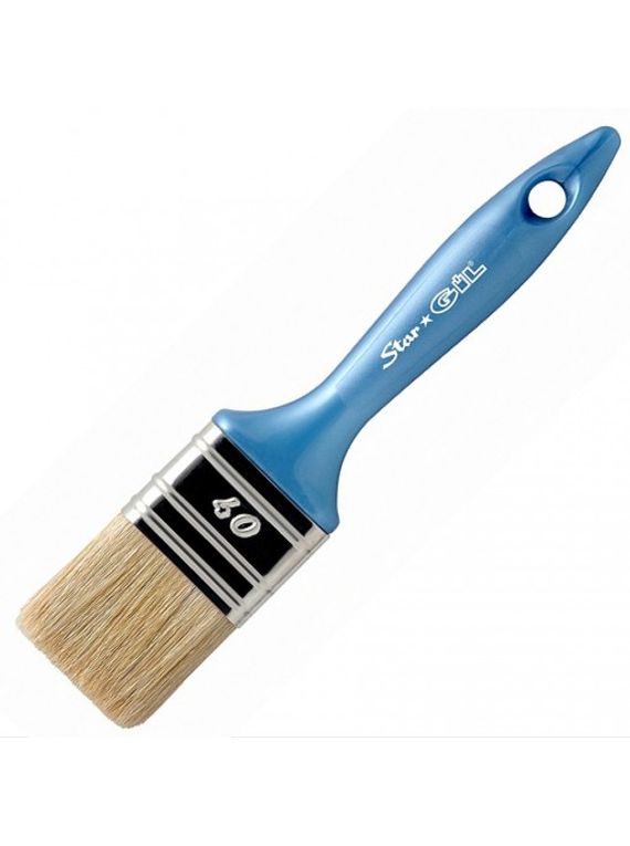Málningarpensill með plast handfangi. Hágæða blanda af ljósum hárum.
