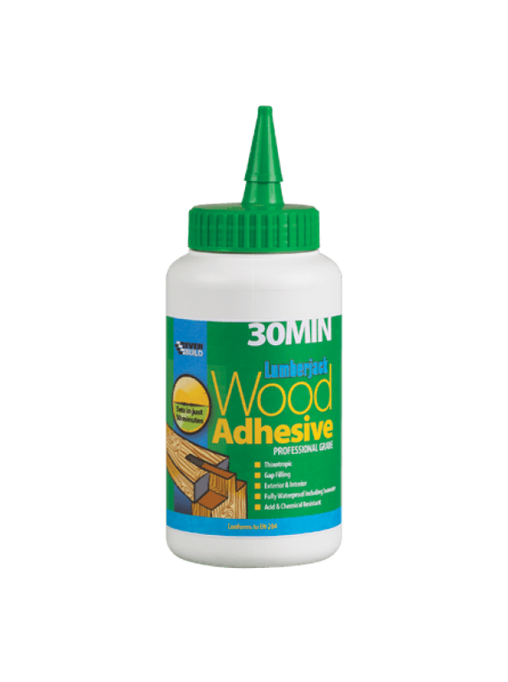 Lumberjack 30 Minute Polyurethane Wood Adhesive Liquid is brown in colour and ideal for larger, horizontal applications where greater economy is required. Sets hard in 30 minutes. Conforms to EN 204. D4 Strength.