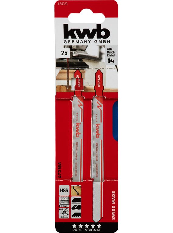 Jigsaw blades, HSS, teeth milled and set, for sheet metal and mesh up to 3 mm thick, for pipes and profiles up to Ø 65 mm, non-ferrous metal, aluminium, sandwich material and Plexiglas.