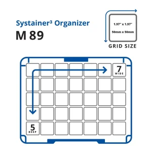The Systainer³ Organizer M 89 with 22 Boxes keeps small components organized and accessible. The clear lid provides maximum visibility. Its grid system secures the small boxes during transit, even when held sideways by the handle. Perfect for keeping hardware safe and easy to find on the go.