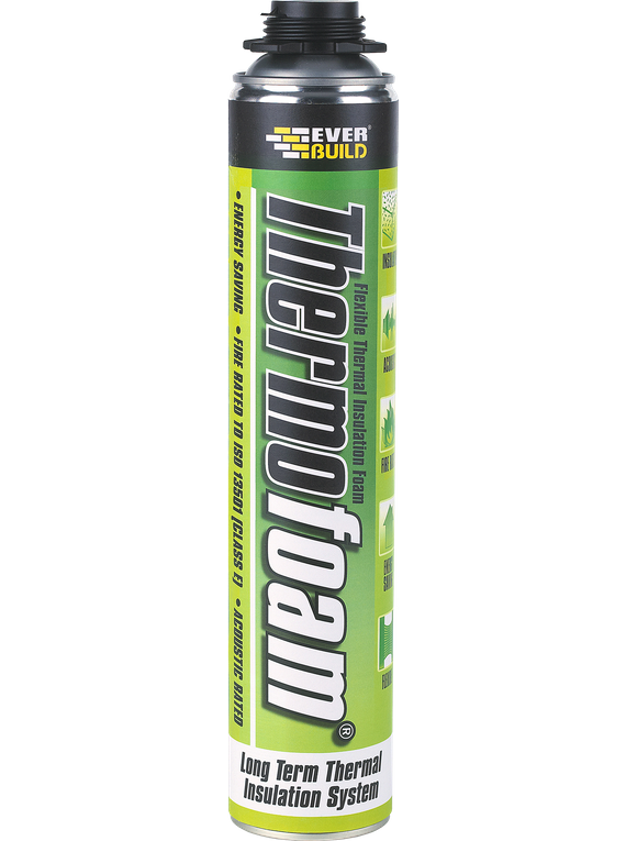 Thermofoam is a specially fomulated, highly flexible PU, gun applied foam that absorbs component movement thereby giving an air tight seal to reduce heat loss and improve energy efficiency in buildings.