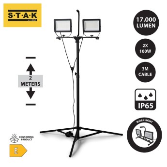 Vinnuljós LED 2x100w kastarar á ál þrífæti
